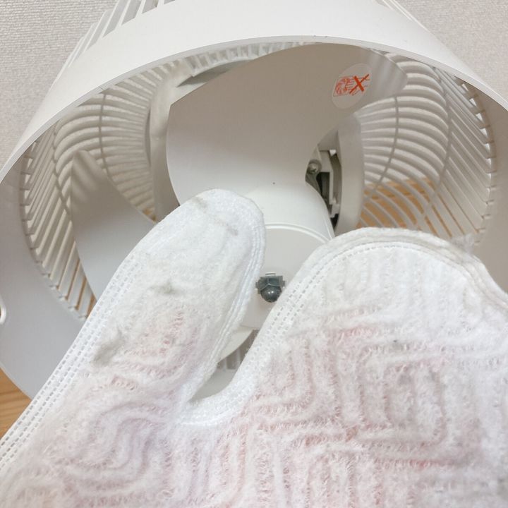 サーキュレーターの羽や裏側など手が入る場所は、サッと拭くだけでホコリを吸着します。