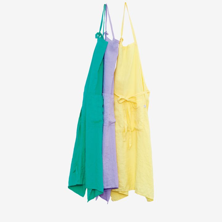 爽やかな色使いで気分が上がる、〈トゥモローランド ホーム〉のリネンエプロン。