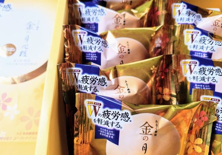 大阪の駅や空港など、旅の拠点で販売されていている「月化粧」ですが、2023年夏から、一時的な精神的・身体的疲労感を軽減してくれる「金のユーグレナ®︎」を配合した、日本初の機能性表示食品のお饅頭「金の月化粧W」が新しく登場しています。