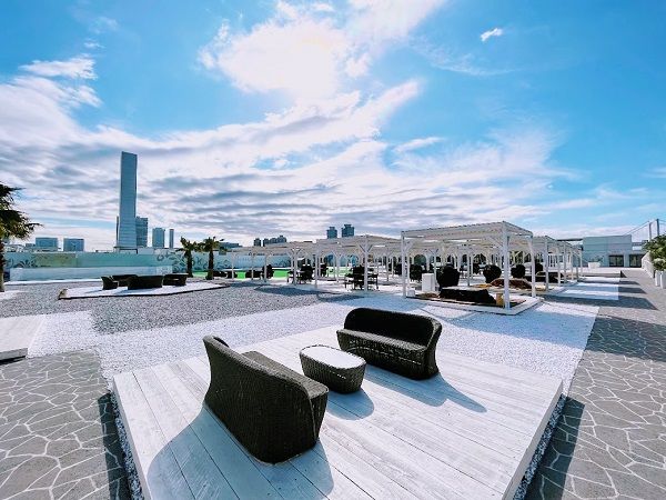 大人×LUXURYな体験を提供するBBQ併設の複合施設「キラナガーデン豊洲」です。豊洲ふ頭の一番奥の方にある、白を基調とした美しいアーバンリゾートです。レストランとBBQ施設、プールやドッグランがあり、撮影やイベント会場としても人気の場所です。