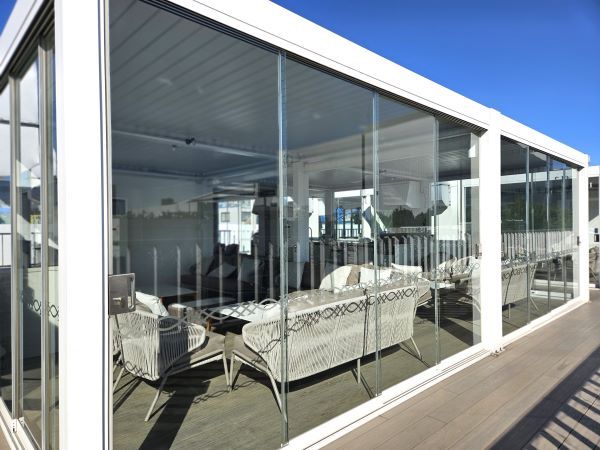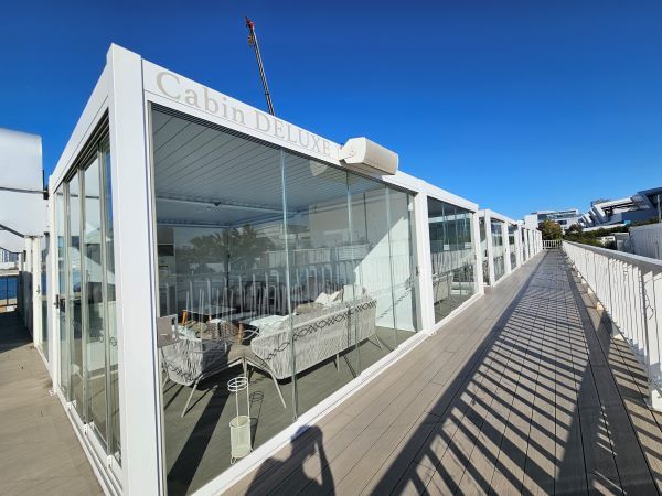 キラナガーデン豊洲を入って右側に、ガラス張りの部屋が「室内BBQ」ができるキャビンエリアがあります。