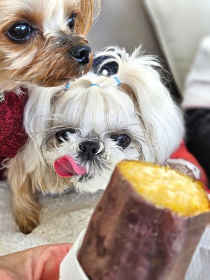 焼き芋を愛犬にもおすそ分け。BBQグリルで仕上げた焼き芋はとても美味しいです。※調理器具などに愛犬が触れないように気を付けましょう。