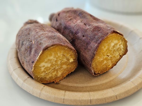 焼き芋は冷凍状態でホイルで巻かれているので、ホイルのままグリルで焼いて温め直す感じです。ほっくほくに仕上がりました。