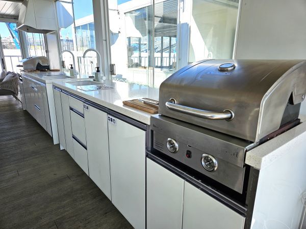 室内ですが、本格的なBBQグリルが設置されています。着火などは、キラナガーデン豊洲のBBQ担当者が操作してくれます。ガス式の蓋付きBBQグリルなので、美味しく焼き上げ、また煙も気になりません。