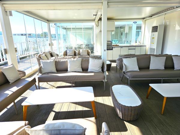 室内BBQができるキャビン内は、ソファ席のラグジュアリーな空間です。冷暖房完備で、季節や天候を問わず快適に過ごすことができます。