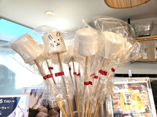 ドリンクカウンターがあるキャピンに、大きなマシュマロの販売がありました。