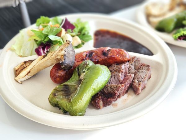 焼いている間にドレッシングをかけて用意をしていたシーザーサラダと共に、ソーセージと野菜もそれぞれの皿に盛りました。