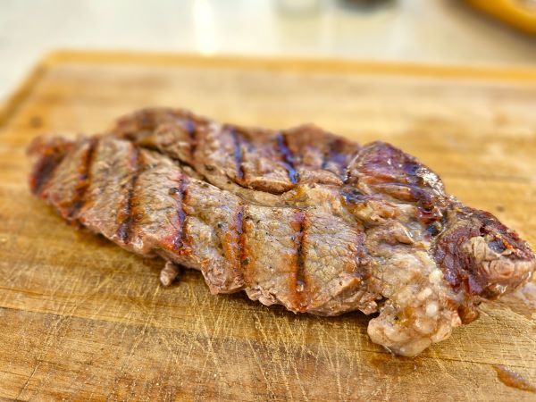 牛肉は先に焼きあがったので、ホイルで少し休ませて切り分けました。