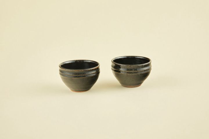 深い黒の鉄釉が施された、出西窯のお椀。吉田璋也の指導により、朝鮮の古い陶器を手本にして生み出されたもので、現在も定番で生産されているロングセラー商品です。胴回りにリムがあるため手にしたときになじみやすく、程よい大きさはどんな食事にも合います。いくつか食器棚に持っておくと重宝する器です。