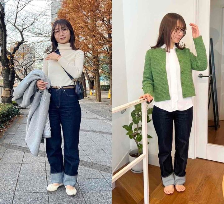 結果、パンプスで外すもよし!スニーカーでカジュアルスタイルを極めるもよし!の、万能ジーンズに。ニットショートジャケットと合わせてきれいめに着こなしたり、白ニットと合わせてベーシックに着こなしたりしてみました。