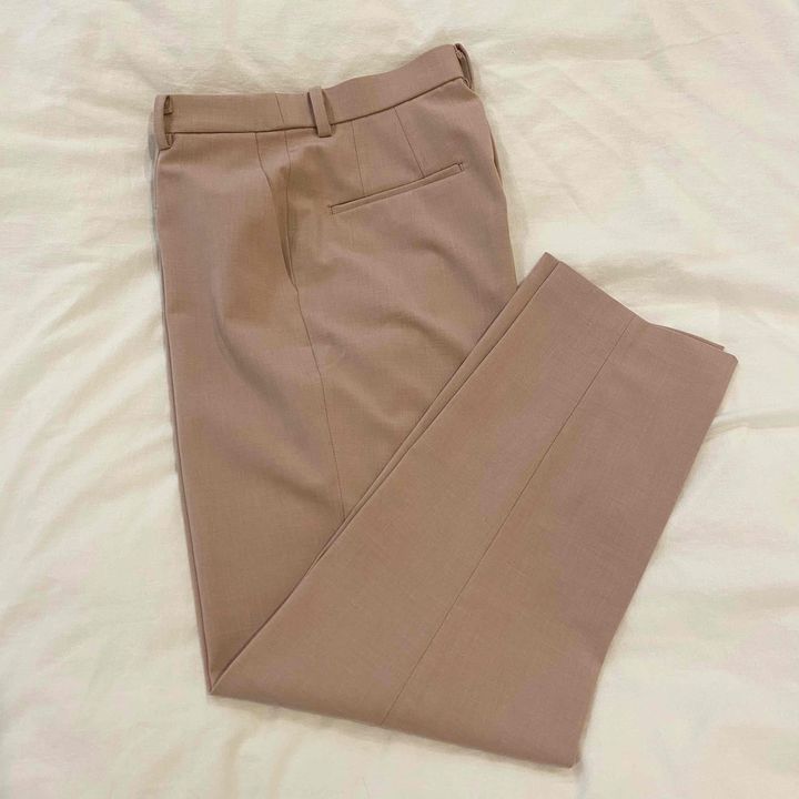 ブルベ・イエベどちらにも合わせやすい、若干くすみがかったピンクが優秀なスマパン。コーディネートの主役になるボトムスです。