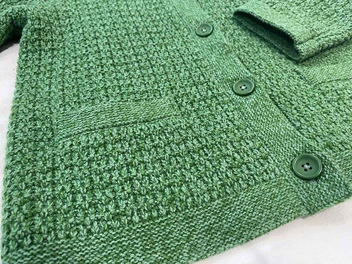 出典:MOREグリーンに少しホワイトの糸が混じった立体感のある素材