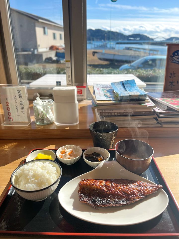 メインの焼き魚にご飯とお味噌汁、小鉢がついています。