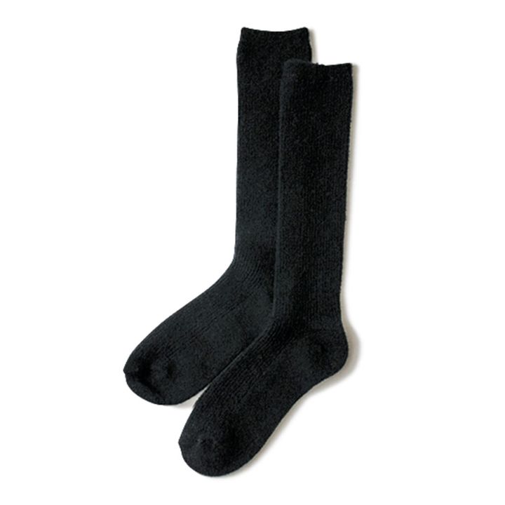 例えば、メンズライクなスポサンにはサンダルのボリューム感に負けないカジュアルな厚手のリブソックス、キレイめなパンプスにはタイツ感覚ではける薄手タイプ、というように靴とソックスのテンションを合わせるのもひとつのアイデアです。ソックス初心者さんは「黒ソックス×黒シューズ」とオールブラックでまとめることで、ソックスがコーデから浮くこともなく失敗なし。ソックスと靴がひと続きになって黒のショートブーツのような雰囲気で楽しめます。良いソックスが揃う今季は、リブタイプやラメ入り、モヘア素材など様々なタイプが多数お目見え。価格も服より手を伸ばしやすいので気軽に取り入れて、冬のおしゃれを前向き&ハッピーに楽しみましょう!
