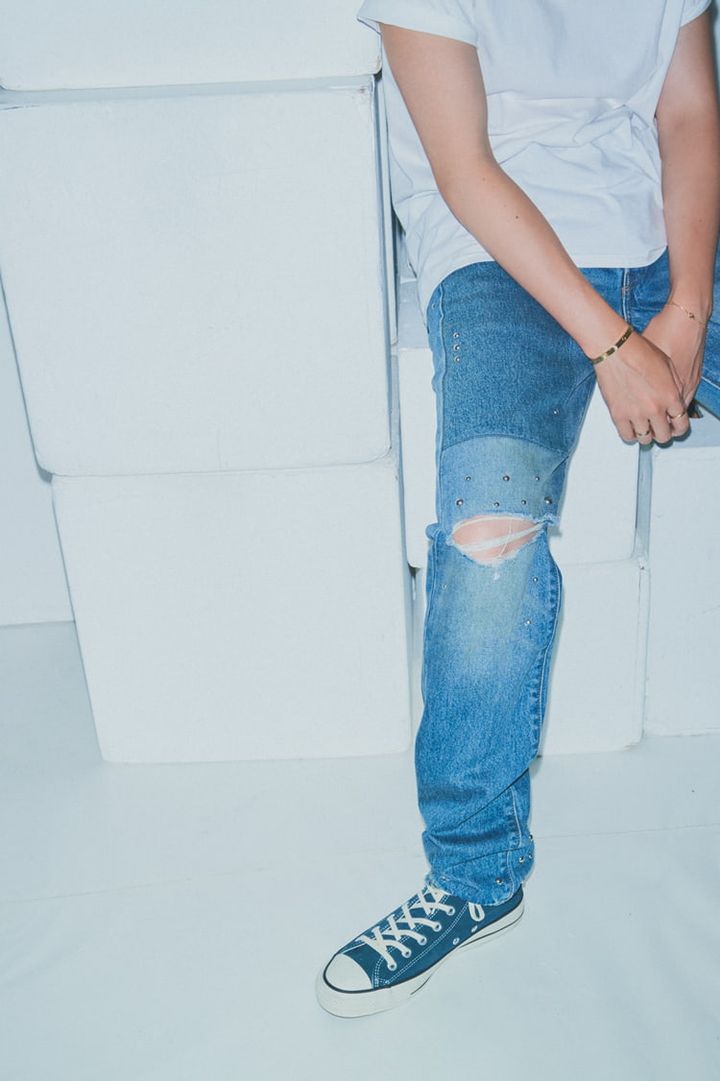 Tシャツ 2,090円/フルーツオブザルーム(FTL ジャパン) パンツ 17,600円/リーバイス®(リーバイ・ストラウス ジャパン) スニーカー 24,200円/コンバース その他/スタイリスト私物