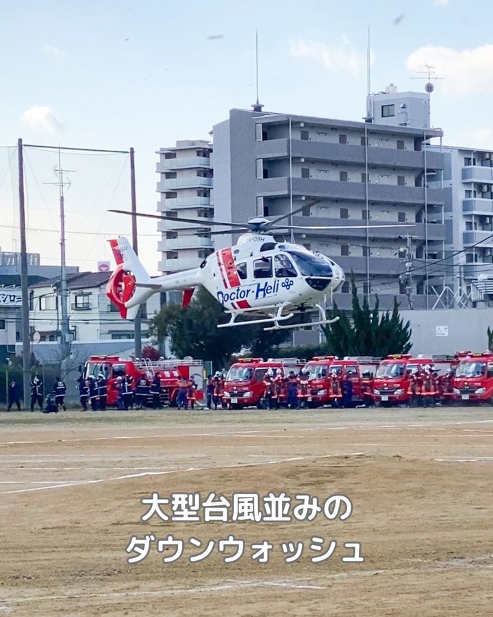 ヘリコプター離着陸時には、【ダウンウォッシュ】といわれる吹き下ろし風が発生します。