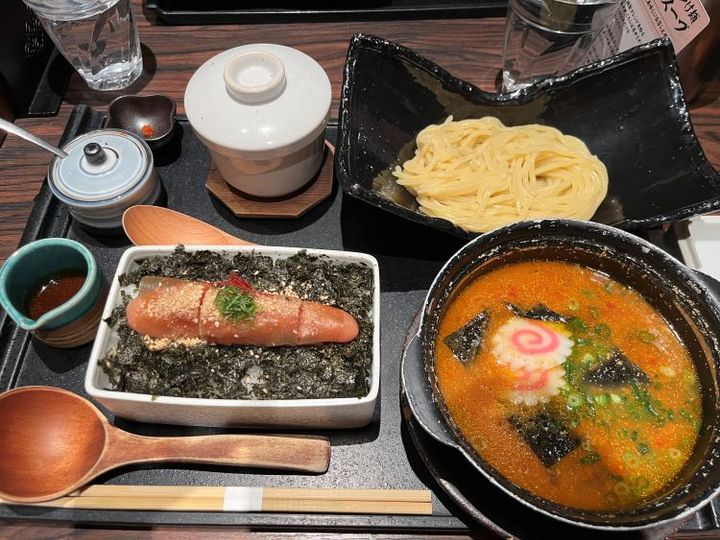 福岡グルメを調べる時に1回は出てくるであろうド定番グルメ「元祖博多めんたい重」。大人気店なため、お昼時は長蛇の列ができることも多いのですが、その味はまさに絶品。ランチタイムで最も人気なメニューである「飯麺セット」では、めんたい重での明太子の味と、つけ麺にした時の明太子の味の違いを楽しむことができます。