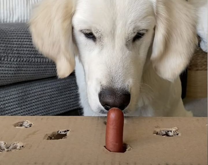 3. ソーセージとのかくれんぼに勝てるか!? 犬さんの挑戦。