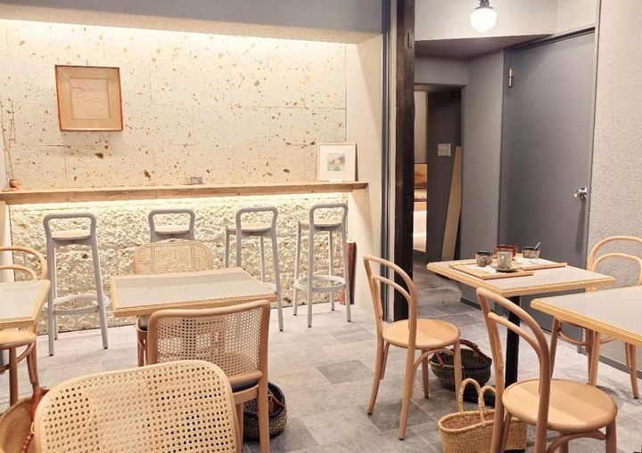 イートイン・テイクアウトができ、まず入口で注文し、イートインは店内奥の席で待つスタイル。グレーを基調に、明るくて木の温かみに溢れたスペースです。