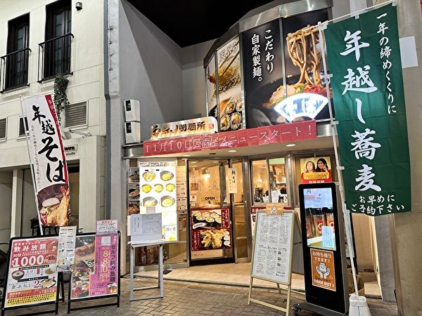 大阪メトロ中央線6番出口から直ぐです。取材したのは年末なので、年越し蕎麦の幟も見えます。