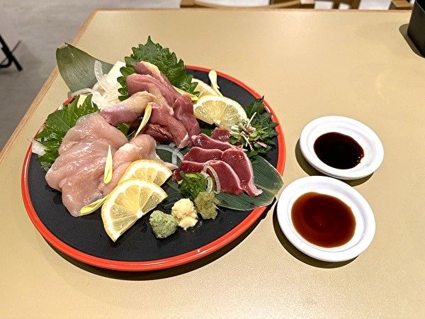 軍鶏刺し3種盛り 1580円(もも、むね、ずり)