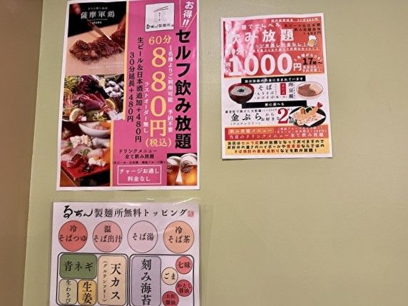 【九条】高コスパ!選べる3種の蕎麦&セルフ飲み放題「るちん製麺所 九条店」