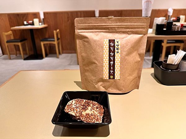 そば茶のカリカリチーズ 500円 蕎麦の香り豊かな人気商品だそうで、香ばしいそば茶とチーズのマリアージュ、手が止まりません。他にもお蕎麦などのお土産も販売中です。