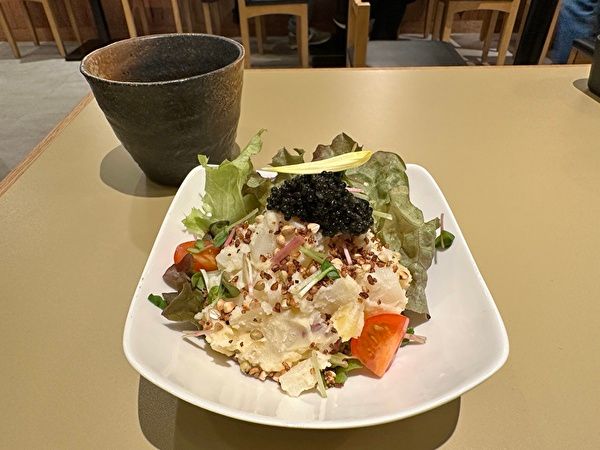 ポテトサラダ そばの実とそば茶 380円 (ランプフィッシュ)キャビア添え +150円