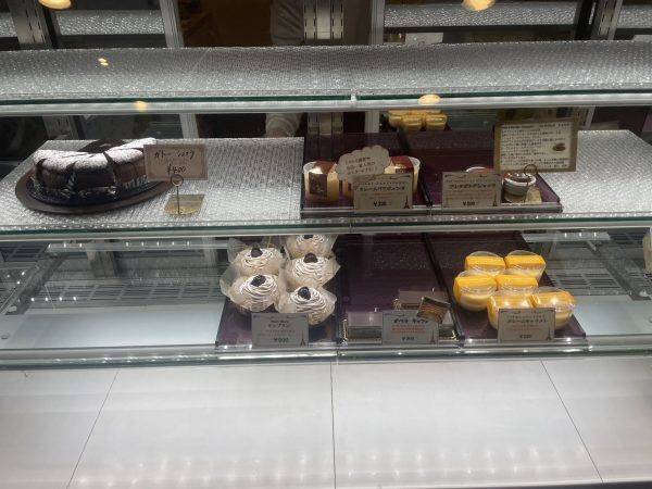 この日は夜の閉店時間の10分ほど前に行ったためショーケースのケーキがほとんど売れていた状態でしたが、普段はショーケースの中に旬の素材がたっぷりはいったケーキが並べられています。