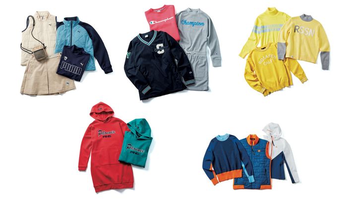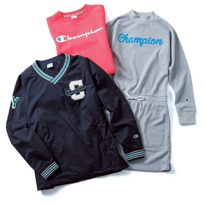 〈右から〉ワンピース¥15,180、トップス¥14,080、スニードジャック¥17,380(以上チャンピオン/ヘインズブランズ ジャパン カスタマーセンター)