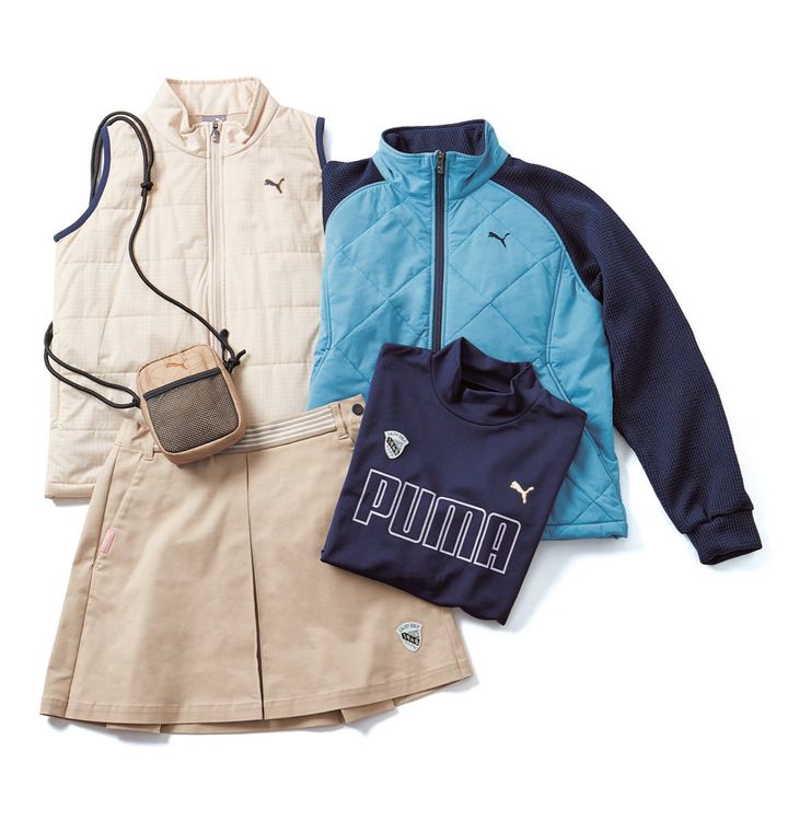 今季のプーマゴルフはベージュやくすみ系ブルーなど、渋めのカラーを展開。シーンを選ばないシックなカラーとシンプルなデザイン、プーマならではの機能性の高さで、さまざまなスポーツやレジャーにも大活躍。ダウンベストやブルゾンは軽量かつ暖かいので、どんなシーンでも重宝します。