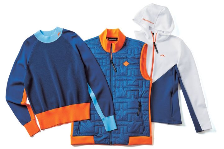 スポーティな中に色気が漂うJ.リンドバーグから、鮮やかなコントラストのアイテムをご紹介。ネイビーをベースに、鮮やかなオレンジに目を奪われるニット&ベスト。白とネイビーのバイカラーにオレンジのジップを利かせたブルゾンなど、一枚で様になるトップスが勢揃い!