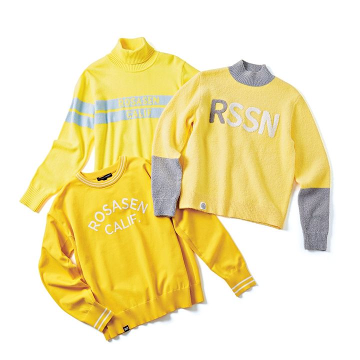 ニット〈右〉¥18,700(ロサーセン エーライン/グリップインターナショナル) ニット〈左上〉¥18,700、ニット〈下〉¥16,500(共にロサーセン/グリップインターナショナル)