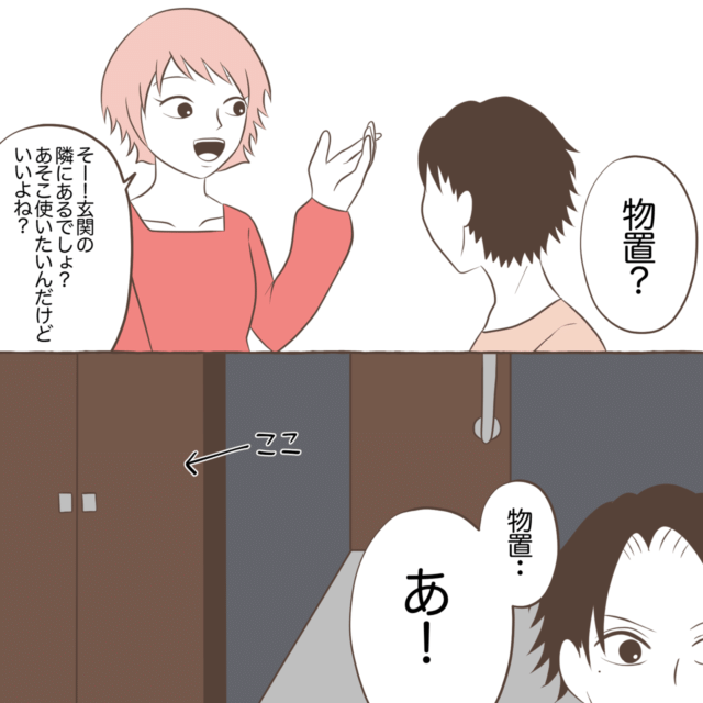 話しの通じない義母のことは相手にしないと決めたわたすさん。ある日、子ども達の思い出の品など荷物が増えてきて収納場所を検討していたところ、玄関横に使っていない収納があったことを思い出し・・・。