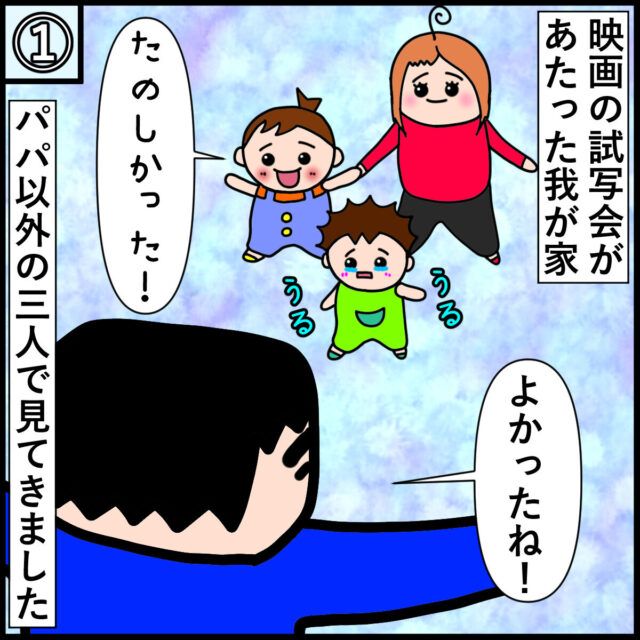 2歳差兄弟みーくんとひーくんのパパであるみーぱぱさんから、映画館に行った時のお話が届きました。ある日試写会の抽選に当たり、ママとみーくん、ひーくんの3人で映画を観に行ったそうなのですが・・