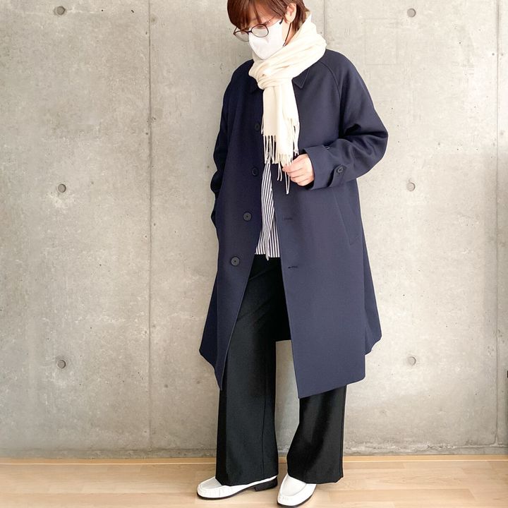 スマートな印象のステンカラーコートやスタンドカラーコートに合わせてみました。やわらかな冬素材のボアはカジュアルダウンするのにぴったり。ふんわりとした印象でかわいいですよね。