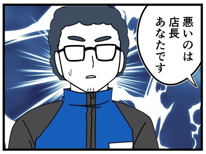 この漫画は著者・ちくまサラさんが、ガソリンスタンドでアルバイトをしていた時のエピソードです。このときの経験が、今でも教訓となっているといいます。ビー君が起こした踏み間違い事故に対し、店長とビー君のどちらが話すか再びもめましたが、そこは副店長が冷静に判断し、店長が事情を説明しに行きました。すると客は、落ち着いた様子で全て見ていたといいました。そして悪いのはビー君ではなく、店長だと言い切ったのでした。『ガソスタ従業員が事故を起こした話』第8話をごらんください。