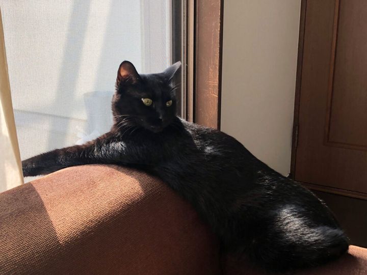 2020年4月生まれ、黒猫の女の子。春生まれで赤ちゃんの頃は黄色い目だったから、ミモザって名前になったよ。毛繕いが大好きでいつもピカピカ。大好物は猫草、冬は白湯を飲んでるよ。怖がりですぐに隠れるけど、新しいものは何でも"ミモチェック"。おうちの中を走り回って体型維持するのも日課。