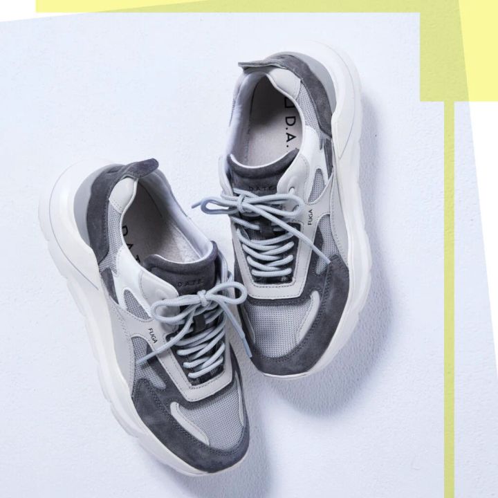 デイトのアイコンモデル「FUGA」は、通気性の高いメッシュをアッパーに使用。濃淡がしっかりしているチャコールグレーに近いカラーリングは、グレーでもボヤけず締まっているのが嬉しい。ほどよいボリューム感が特徴ですが、オフィスカジュアルにも適しているので、セットアップのハズしにもよさそう!