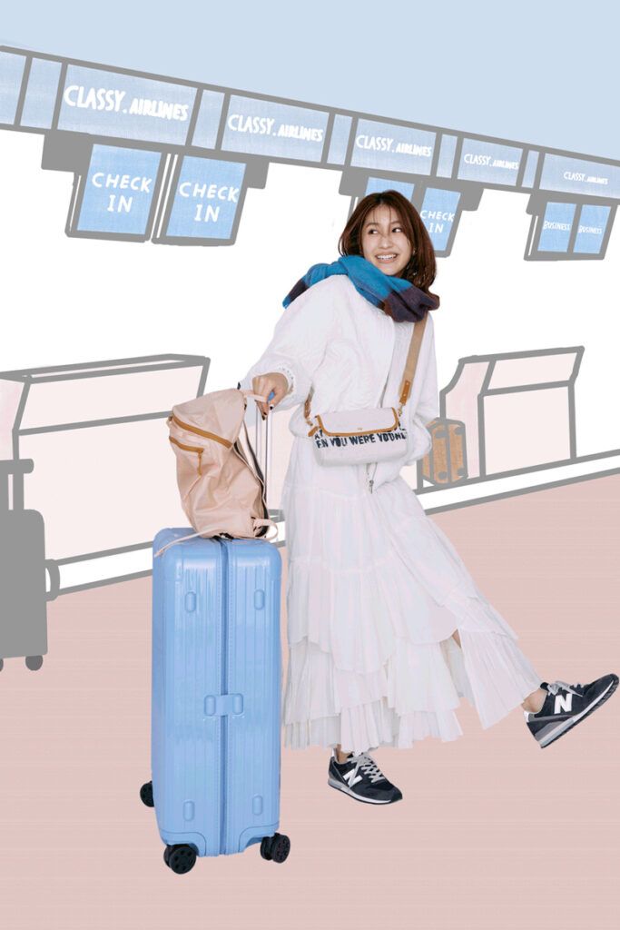 冬の日本から、ハワイに行くときは脱いだら現地にほどよく馴染めるコーデで空港へ。常夏リゾートを存分に楽しむなら大きなキャリーに水着やワンピもたくさん詰め込んで。日本ではできないスタイリングを楽しむのも旅の醍醐味。