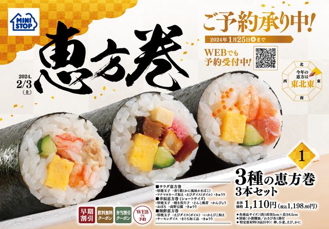【恵方巻2024】スイーツも!「ミニストップ」は店頭早期予約で3つの特典。種類は?