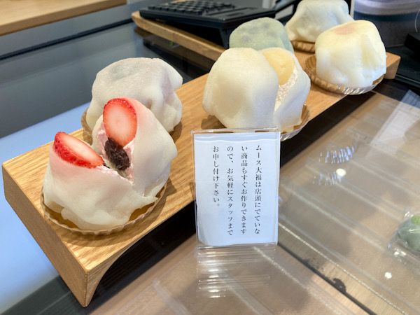 隣のショーケースは、テレビ番組でも紹介されたという【ムース大福】のコーナー。