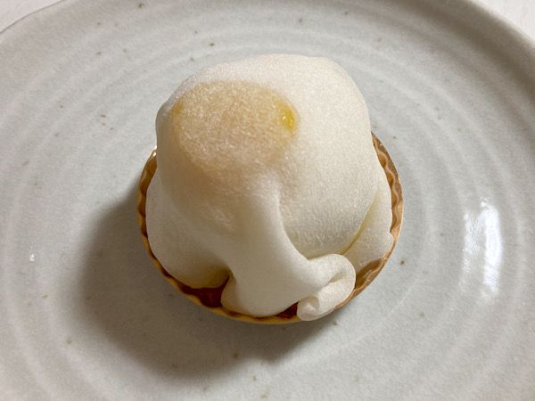 栗のペーストの優しい風味が口いっぱいに広がります。ふわふわなはずのスポンジ生地が引き締め役になるくらい、全体が究極にふわっふわ。上にゴロッと乗った栗が贅沢!