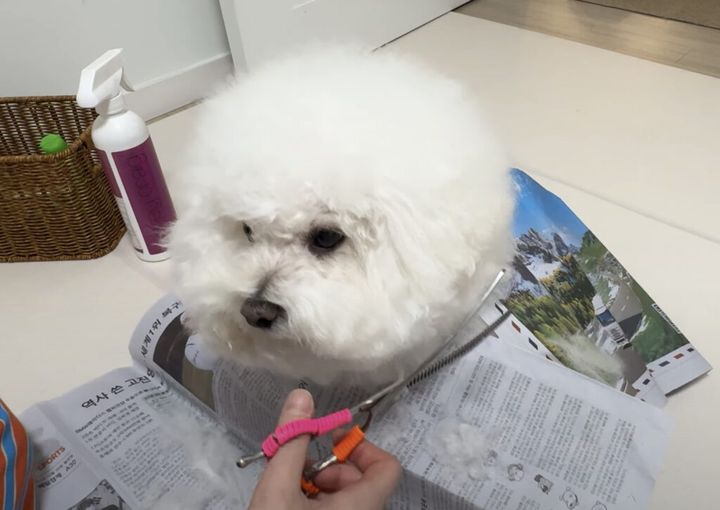 3. トリミング中のもふもふ犬さん、ハサミの音が心地良くってウトウト。