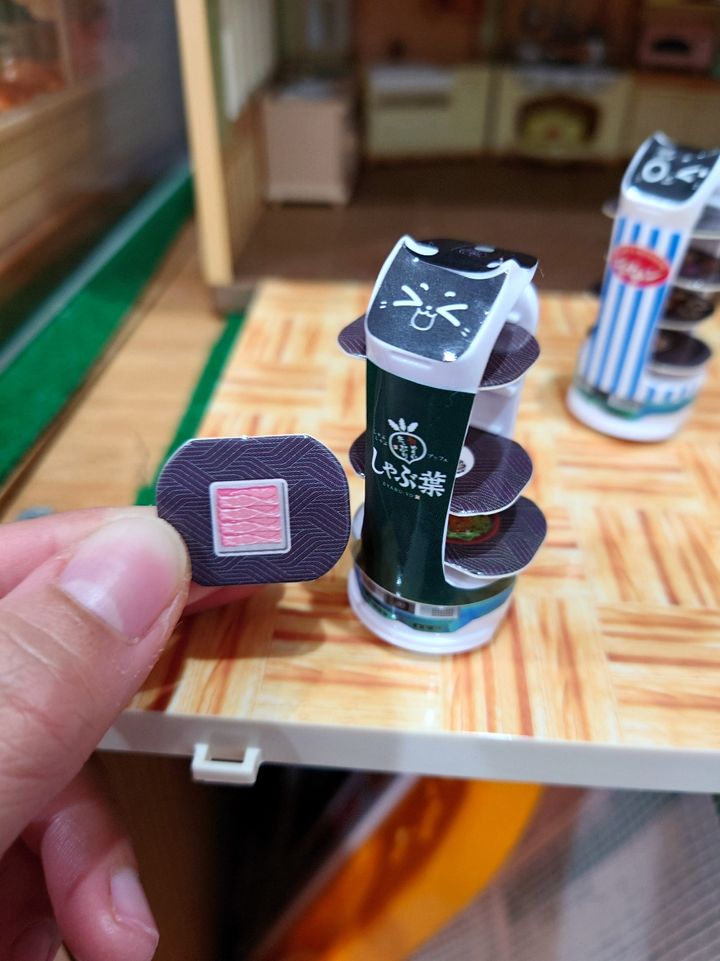 間には、厚紙でできたお料理をいれてあります。これも店舗によって内容が違いました。ジョナサンだとミニサラダ、しゃぶ葉ではお肉という感じで本当に再現度が高くて、びっくり!