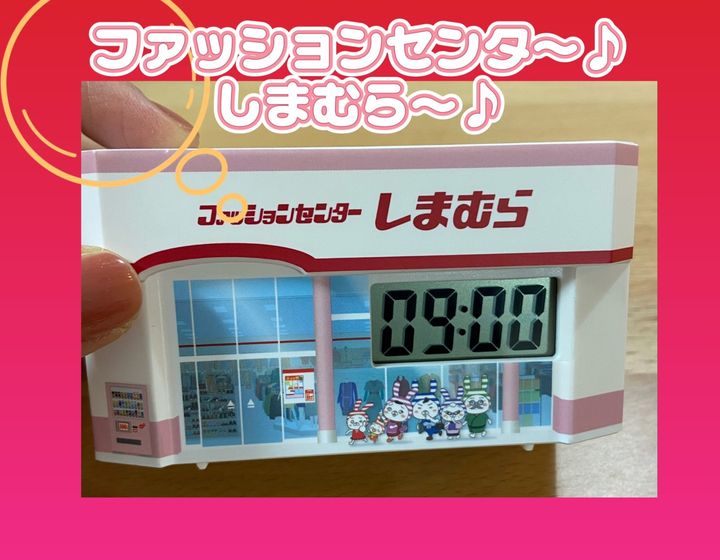 5000円以上購入し、しまむらアプリを提示するとなんとこんなにかわいい置き時計をプレゼントしてもらえました。これは新年に先着でもらえるキャンペーンでした。しまむらの店舗の型になっていて、アラーム音はしまむらのテーマソング!なんとも面白い置き時計。しまむら好きにはたまらないレアなプレゼントです。大切に使いたいと思います。