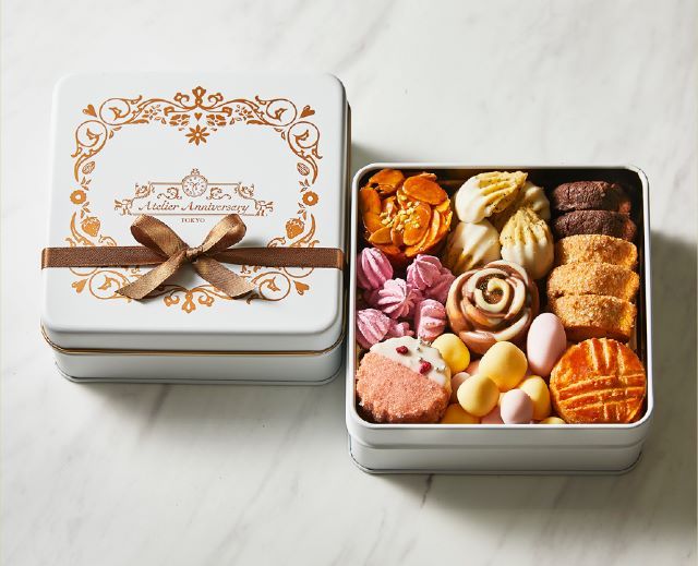 パティシエのこだわりが詰まった風味豊かなこの時期だけの特別なクッキー缶。プティサイズのクッキーやフロランタン、メレンゲ、ドラジェにショコラまで、まるで宝石箱のようなカラフルで可愛らしい10種のスイーツが詰まっています。サックリ、カリッ、ザクッ、しっとりと素材に合わせた異なる食感が楽しめます。缶のカラーはホワイトとピンクの選べる2色展開。