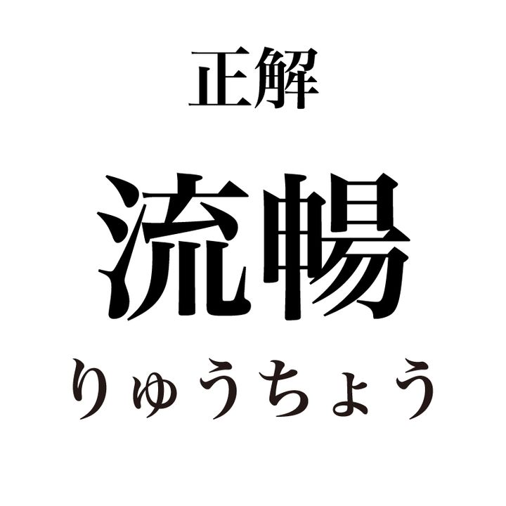 正解:「流暢(リュウチョウ)」※言葉がすらすらと出て、よどみないこと。