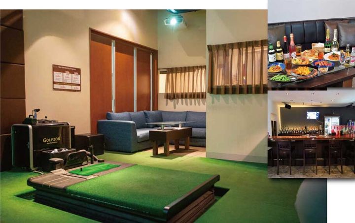 雰囲気あるダイニングバーに、シミュレーションゴルフを楽しめるブースがあります。ゴルフ仲間とともにプレーや練習をしつつ、食事やお酒を楽しむことで非日常を味わうことができるお店です。もちろん、ラウンドモードなどで本格的なゴルフも楽しむことができます。