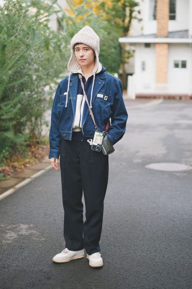 「古着が好きなので、コーディネートのどこかしらに取り入れています。今日は、ちょっときれいめが気分だったので、プレスがきいたスラックスを合わせました」